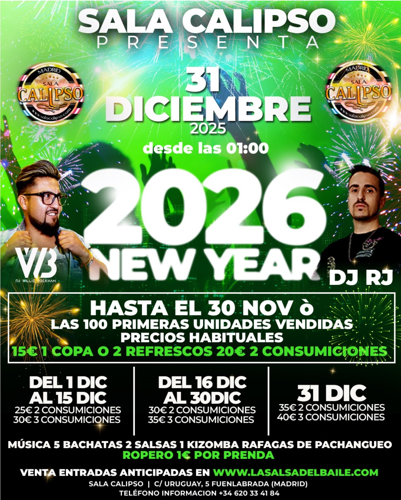 Nochevieja SALA CALIPSO Miercoles 31 Diciembre 2025