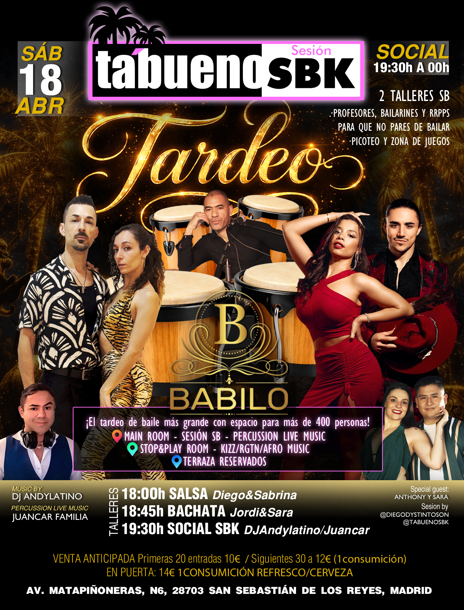 Llega el tardeo TabuenoSBK en *SALA BABILO* (Sanse) con aforo para más de 400 personas (2 salas, terraza) en el tardeo más grande jamás visto en la zona norte de Madrid, el *sábado 18* a partir de las 18:00 con música en directo y muchas sorpresas más hasta las 00:00h