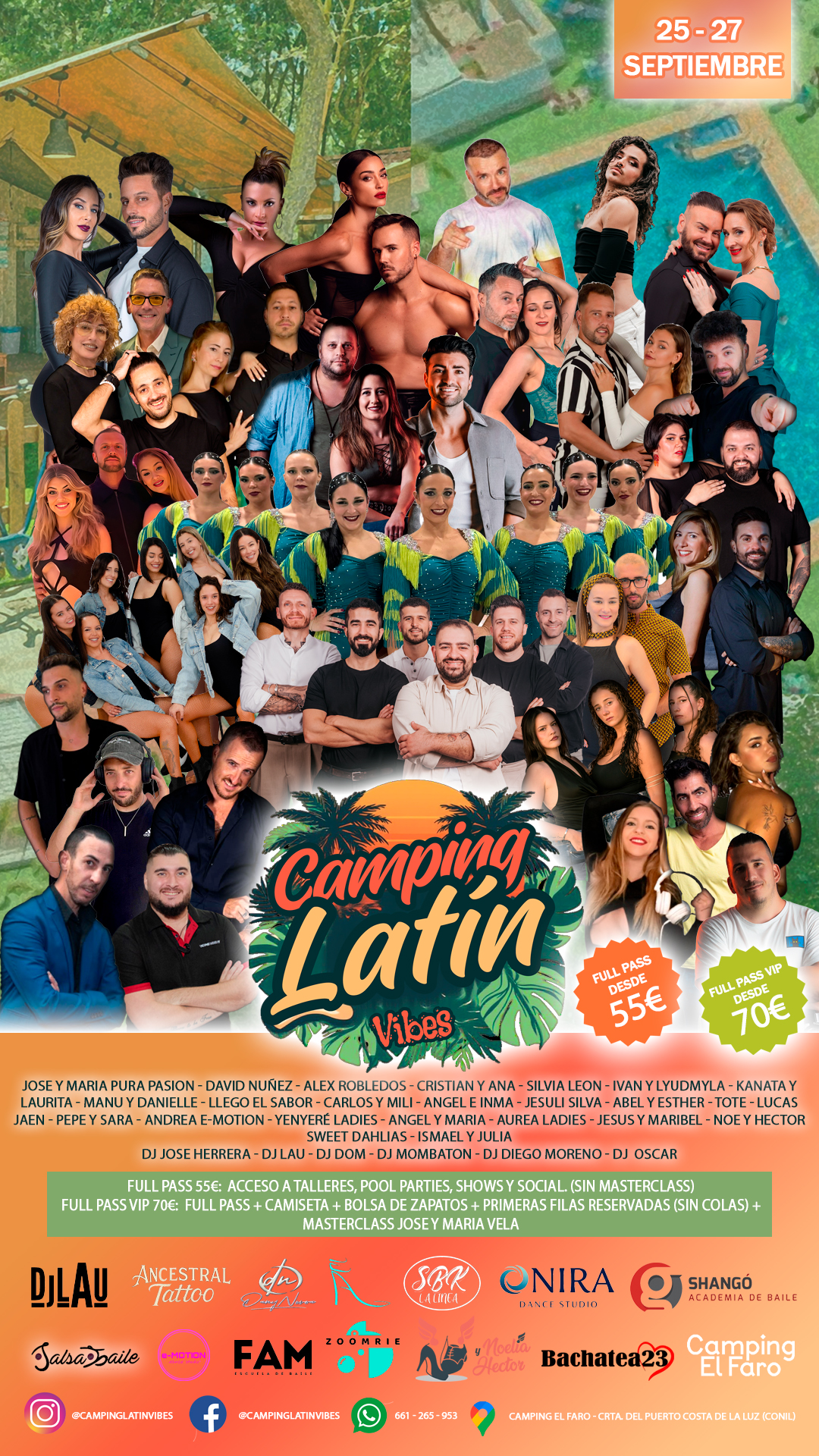 Vive Camping Latin Vibes, un evento de baile latino los dias 25,26 y 27 de septiembre que combina naturaleza, piscina, fiestas nocturnas y shows durante todo un fin de semana inolvidable creando una experiencia intensa de música, baile y convivencia. ¡Te esperamos!